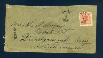 F46 RINGTYP P-H. 20 ÖRE PÅ BREV ÅMÅL TILL USA. 2-2-1890.