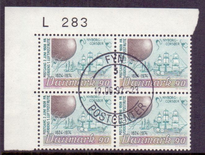 F603 Danska postväsendet 350 år 90 öre, 4-block |