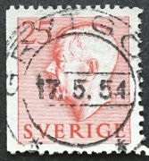 F406B 25 öre Gustaf VI Adolf, <åsgarn 26.5.54 på klipp