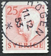 F406B 25 öre Gustaf VI Adolf, Venjan 20.2.52 på klipp