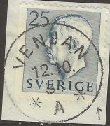 F406B 25 öre Gustaf VI Adolf, Venjan 12.10.5x kort höjt.
