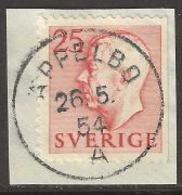 F405 25 öre Gustaf VI Adolf,Äppelbo 26.5.54 vacker.klipp