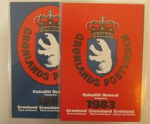 Grönland diverse, årsats 1979, försegl. Katv 75 kr. Tio ark brevm. Jul. 1980-84, 2 st 85, 87-89. Extramatr.
