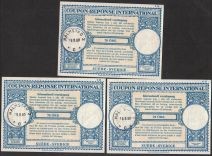 9 st internationella svarskuponger från 1960 - 90-talet stämplade i Sverige