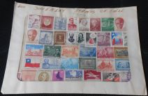 Slitet insticksalbum med frimärken från hela världen - c:a 4-5 fulla sidor