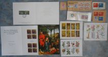 Brev- & helgmärken mm mest Sverige (många bensinskadade(?) kartor julmärken)