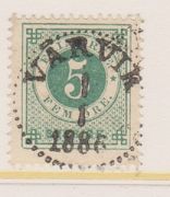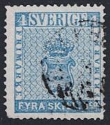 F7 5 öre vapentyp stpl. Prakt.Åmål 28-11-1872 snyggt märke Kv.190:-