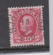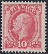 F 39 typ I Oscar II boktryck, 10 öre nyans a mattkarmin *. Katv 1800 kr. Obs vit fläck vänster om näsan!