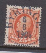 F57 25 öre Oscar stpl.Prakt. Dals Lerdal 28-9-1911 Kv.+400:-
