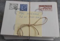 Lite utländskt: 2 små insticksalbum, lösa märken, vykort. Kuvert mm