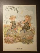Vykort med märke ur Block Världsungdomsåret 1985 med äkta autograf av tecknaren
