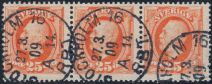 F 57 STOCKHOLM 3 MSKG 1906-08-29 två sidvända stämplar på 3-strip A län