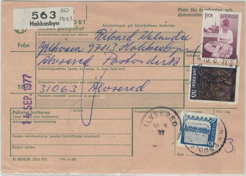 Hakkasbyn POB 3 (Yrttivaara) NSt 62 på paketavi 10.9.77 |