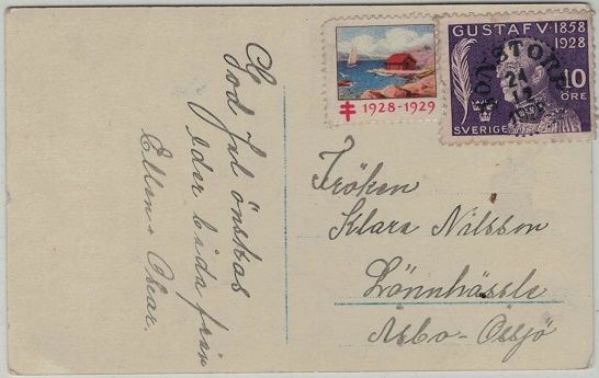Jonstorp NSt 14 på brevkort 24.12.1928 PRAKT |