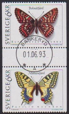 1801+1798 Mellanstegspar Bankeryd 1993-06-01 Fjärilar Lyx F-län |