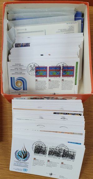 FN Wien Häften, helsaker, FDC m m 1979-1996 Två ex av varje + 12 häften FN 50 år