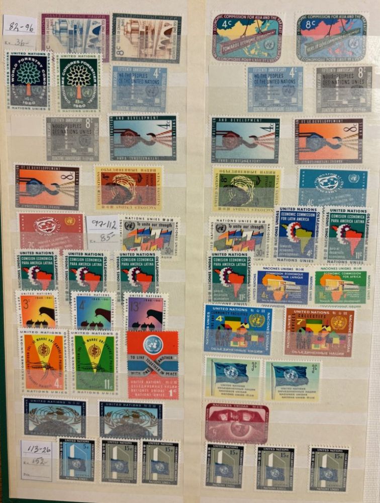 FN Inst.bok med FN-New York postfr + ngt stpl Ca 370 märken