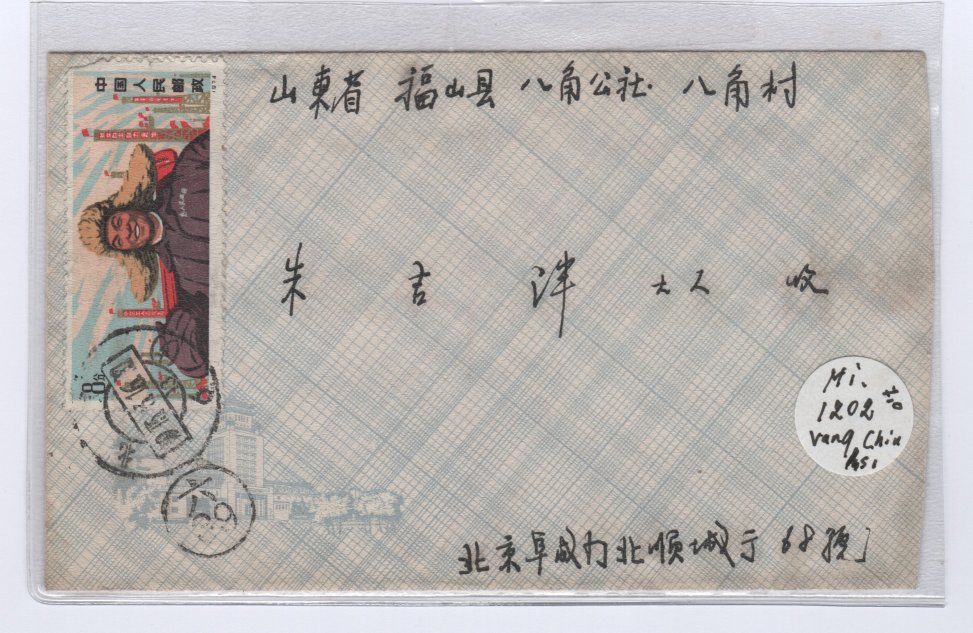 KINA Dekorativt brev med Mi 1202 till okänd adressort