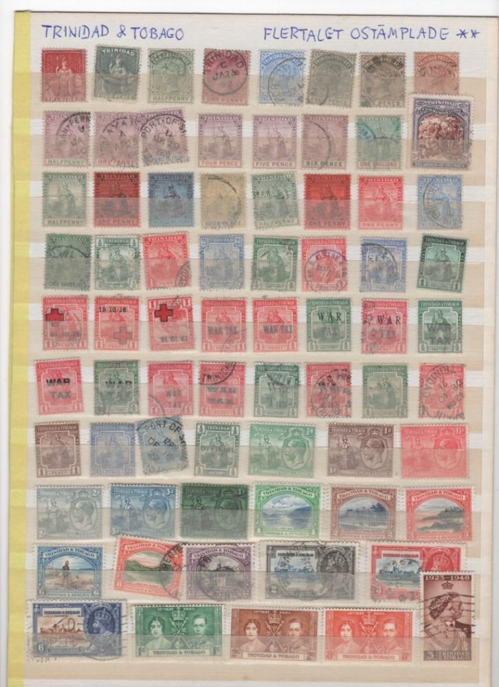 TRINIDAD/TOBAGO Visirblad med ca 100 st stpl/postfr märken + Britt Salomonöarna (7 st)