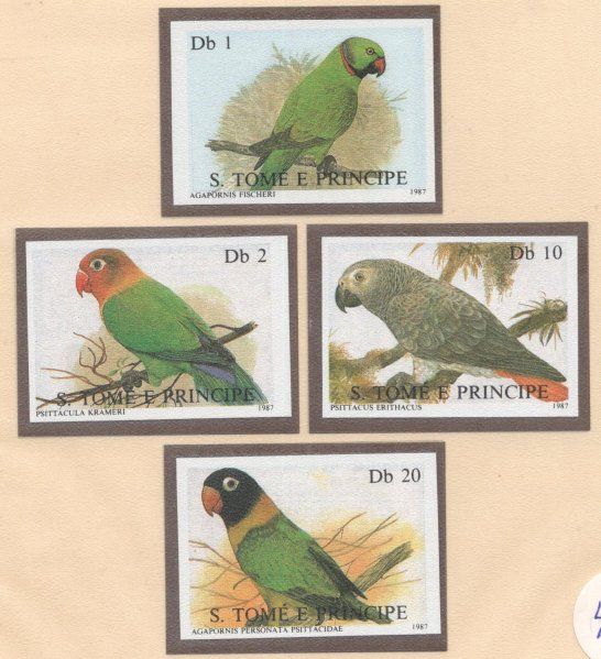 S TOME E PRINCIPE Kompl serie (Mi 865-68) otandade märken FÅGLAR Upplaga 1500 ex