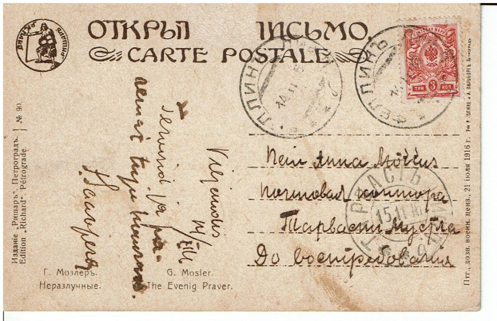RYSSLAND Vykort med fint motiv postgånget 1916
