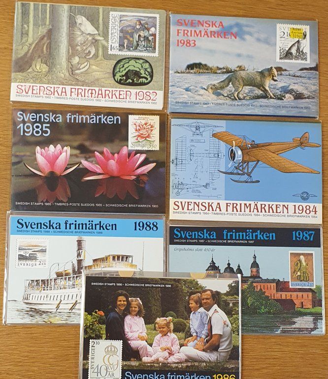 Årssatser (7 st) 1982-88 Frank.värde 1670 (inkl 28 rab.märken)