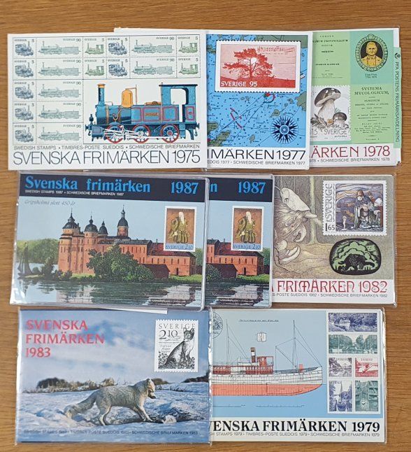 Årssatser (8 st) 1985. -77, -78, -79. 82, -83, -87(2) Frank.värde 1300