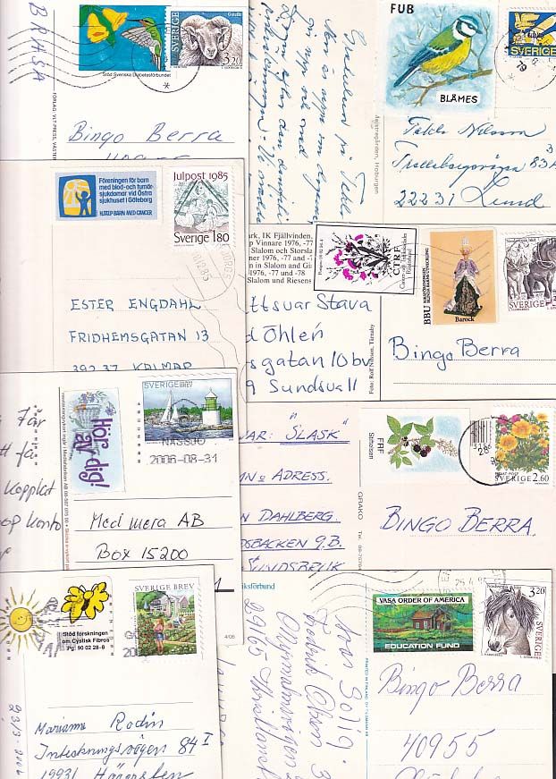 Vykort (över 300 st A6) med moderna brevmärken, ej SNF 1,4 kg