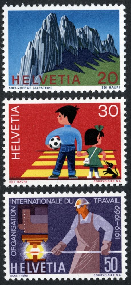 Schweiz, Helvetia 1969 - Traffic safety and 50th anniv. of the ILO |