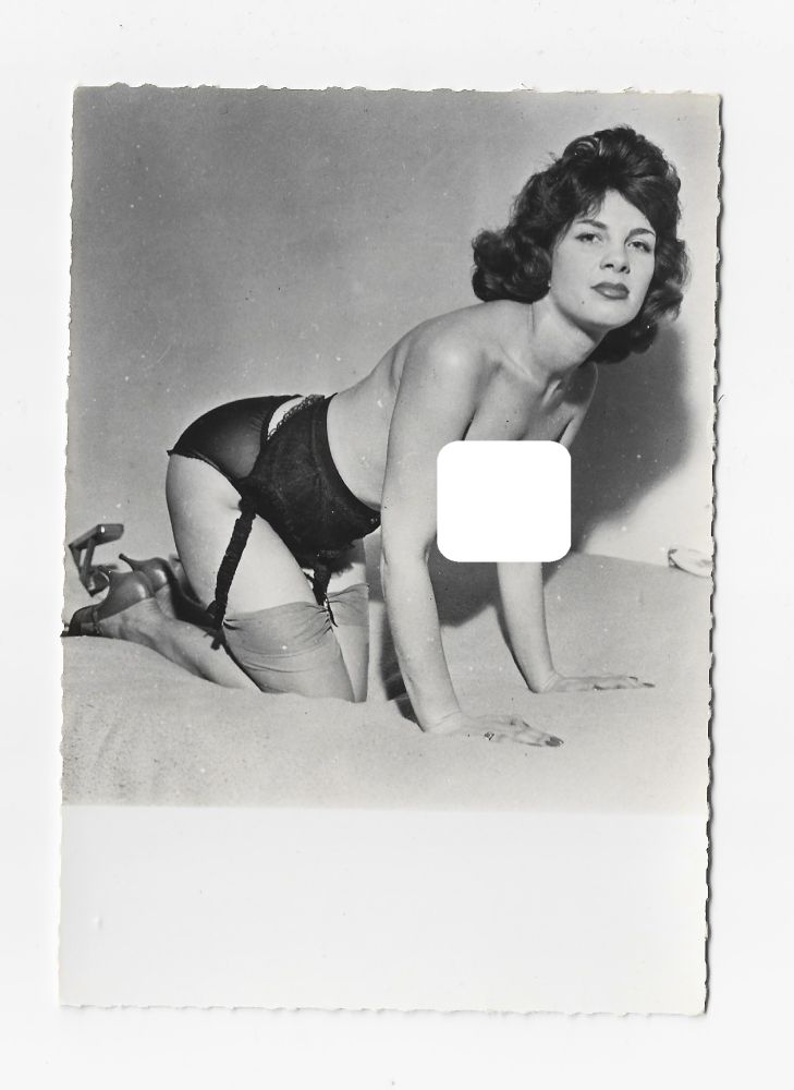 Mycket fint vintage fotovykort med delvis naken tjej/kvinna. Naturligtvis ingen vit censur på originalet, endast här. Fotovykort är här definition för ett taget foto som är tryckt på kartongpapper som är i tjocklek som ett vykortstjocklek. Ett framkallat fotografi på fotopapper är mycket tunnare. Ca 60-tal om man ska gå på detaljer och klädseln i fotot. Obs Ej offset tryckt.Storlek 15 x 10,5 cm.
