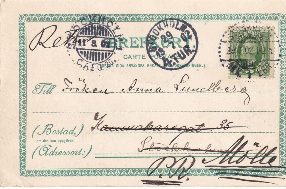 Till Mölle. Returnerat st 27/7 1902 4 TUR