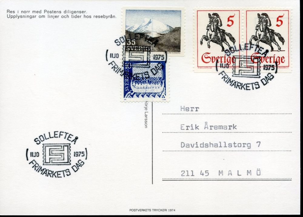 SOLLEFTEÅ 11.10.1975. Frimärkets Dag. Frimärksfrämjandets logotyp |