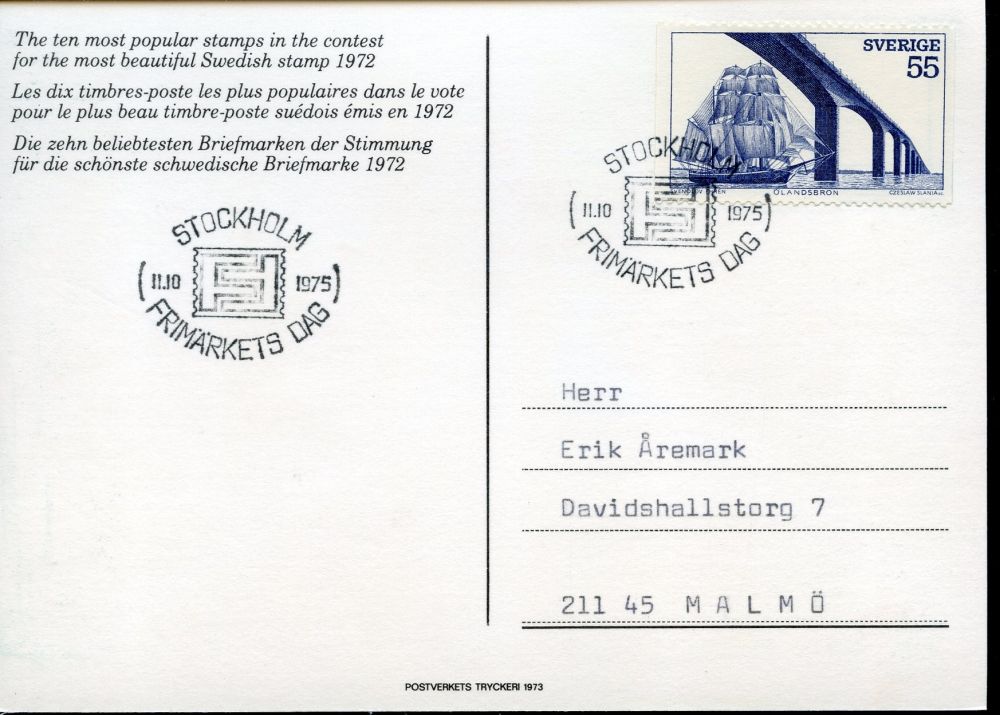 STOCKHOLM 11.10.1975. Frimärkets Dag. Frimärksfrämjandets logotyp |