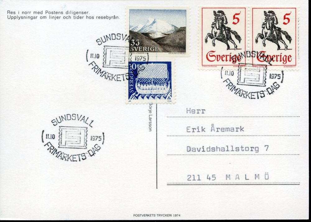 SUNDSVALL 11.10.1975. Frimärkets Dag. Frimärksfrämjandets logotyp |