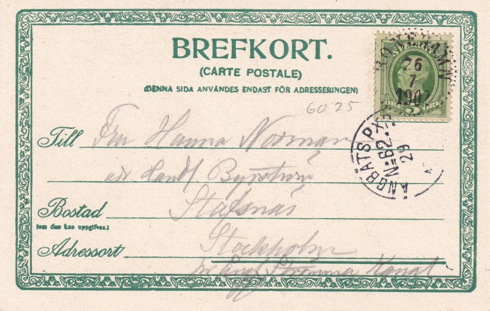 -hamn till Stockholm 26/7 1902 och vidare med Ångbåt till Stafsnäs