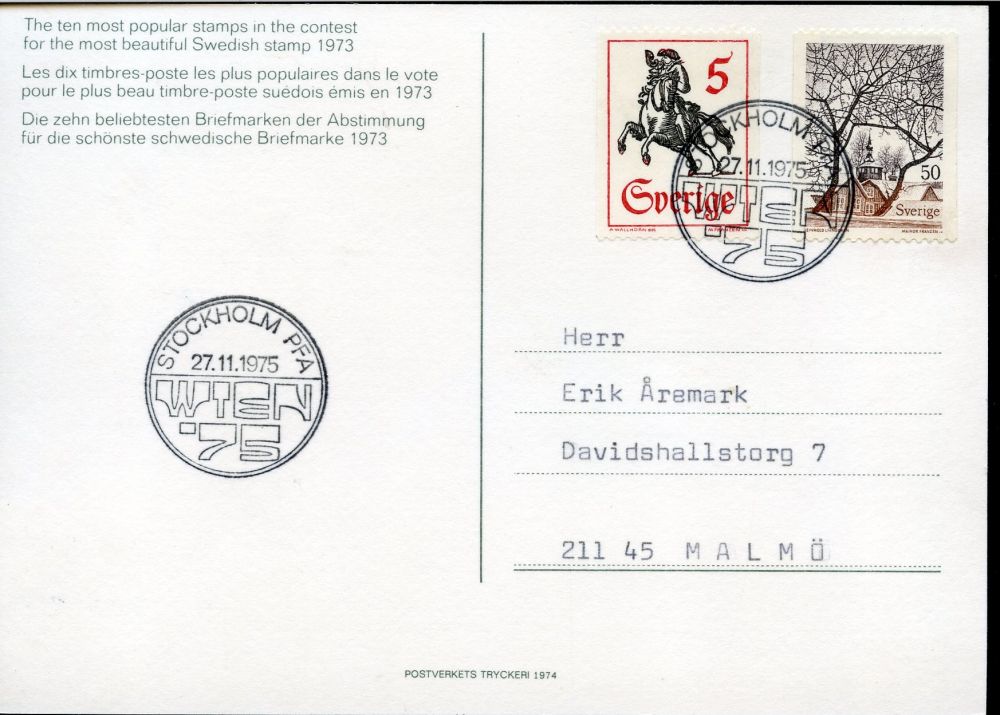 STOCKHOLM 27.11.1975. PFA Wien 75. Utställning |