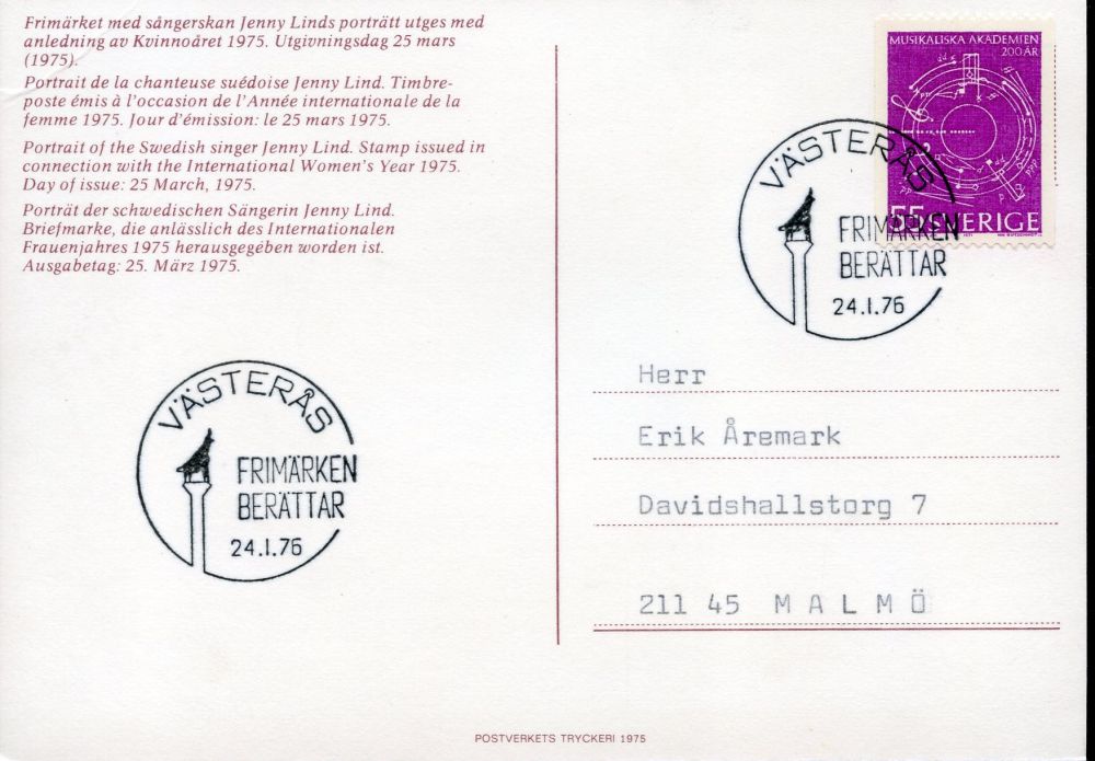 VÅSTERÅS 24.1.1976. Frimärken berättar. Skulpturen Tjuren |