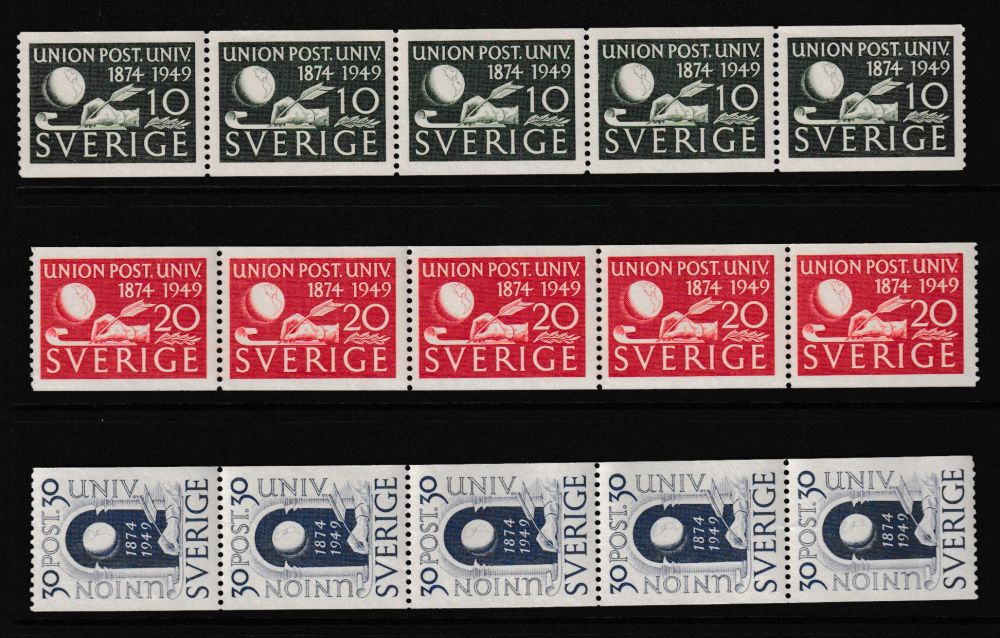 390-92** 5-stripp Världspostföreningen UPU 75 år |