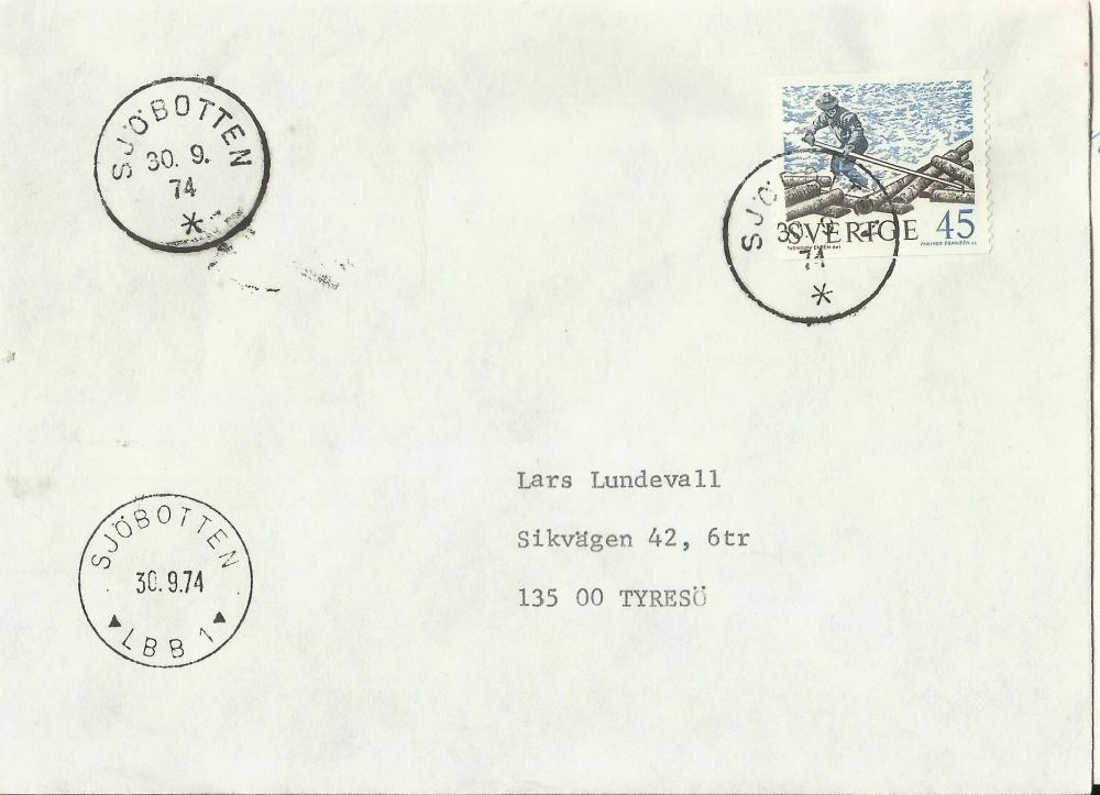 Sjöbotten på trycksaks brev 1974, Sjöbotten LBB1 sidostämpel |