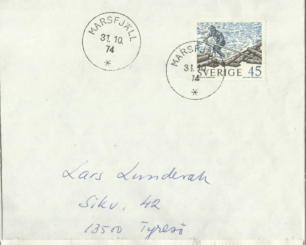 Märsfjäll, p¨å 45 öre Flottning,, på trycksaksbrev 1974 |