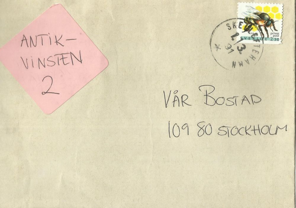 Skelleftehamn, gummistämpel på brev 1991 |