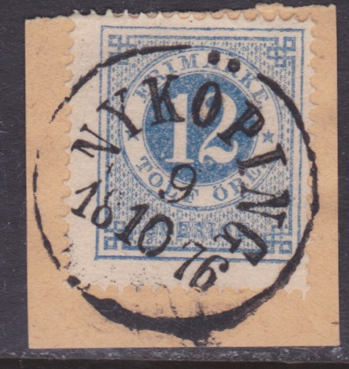 F21 12 öre T14 Nyköping 9.10 1876 vacker-prakt på klipp |