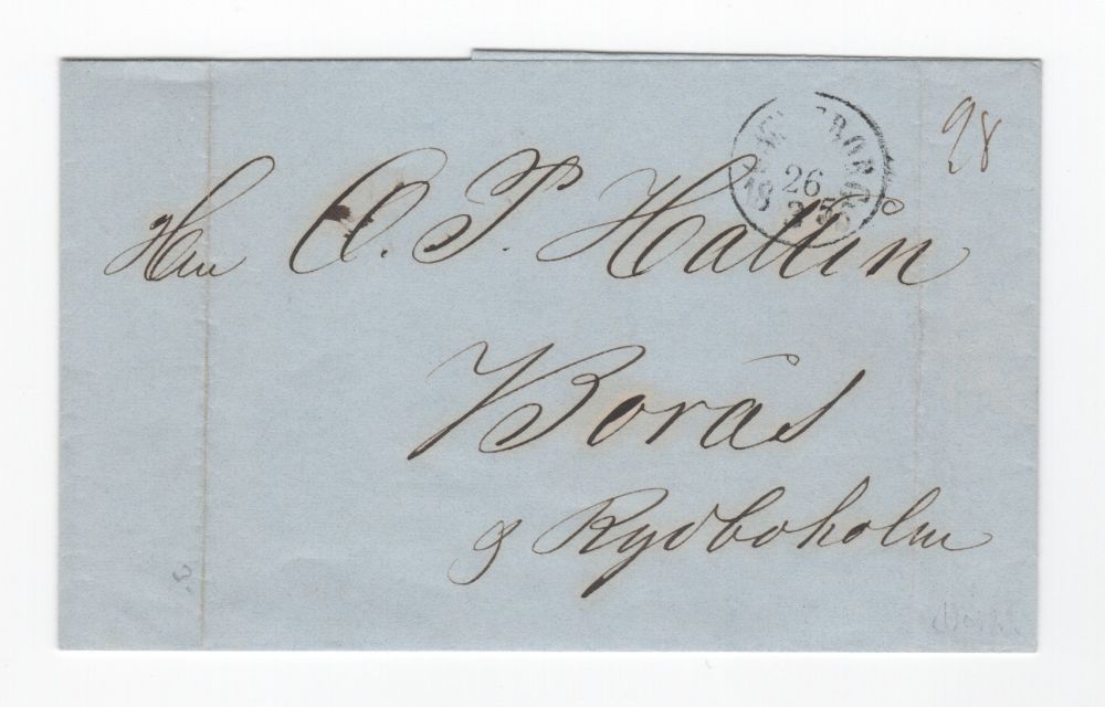 Göteborg 1855-03-26 Förfilateli Nst 10 typ 3 till Borås |