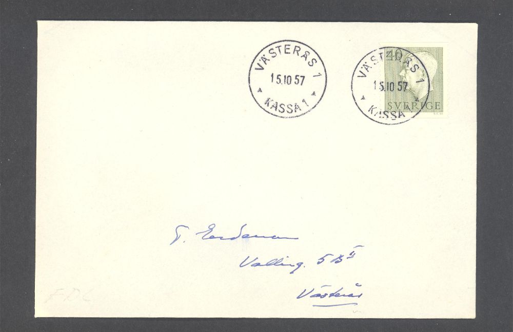 F 417 G VI Förstadagsstämplat Västerås 15/10-57 |