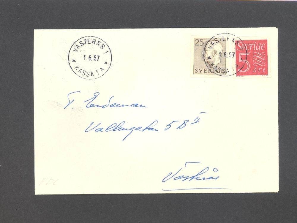 F 394,407 Förstadagsstämplat Västerås 1/6-57 |