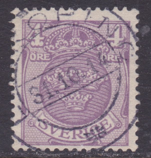 F74 4öre Riksvapnet VM cc, Linköping 31-10.14 vacker maskinstämpel |