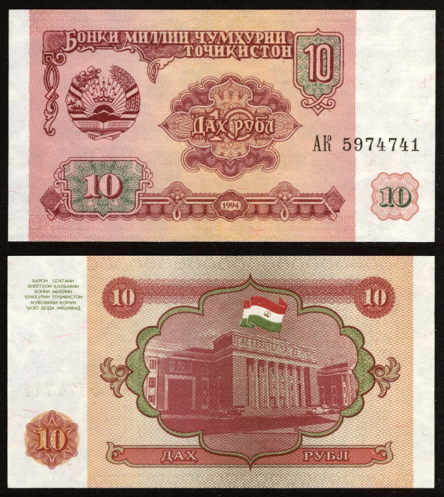 Tadzjikistan 1994 – 10 Rubles, UNC |