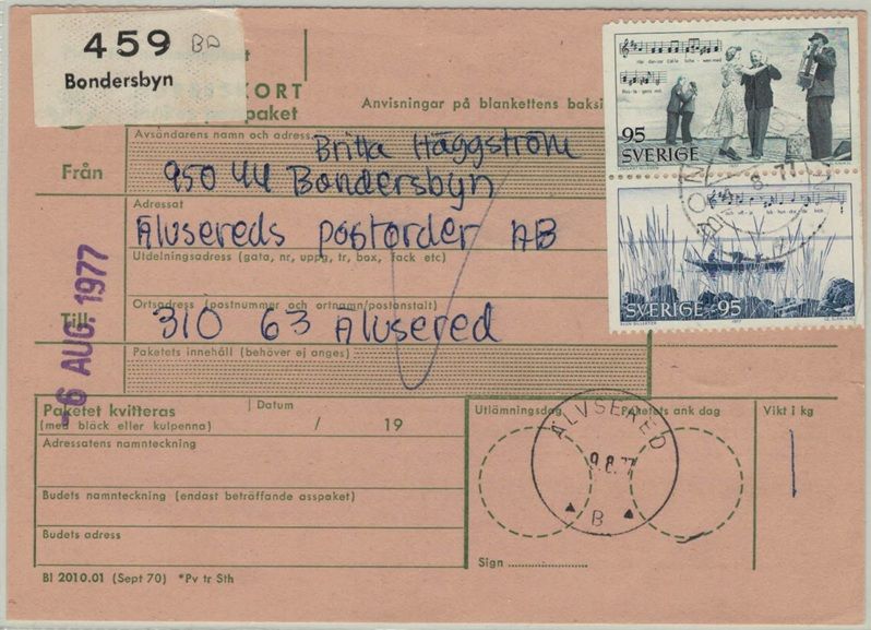 Bondersbyn NSt 58p på paketavi 4.8.77 (Häftesblock baksidan) |