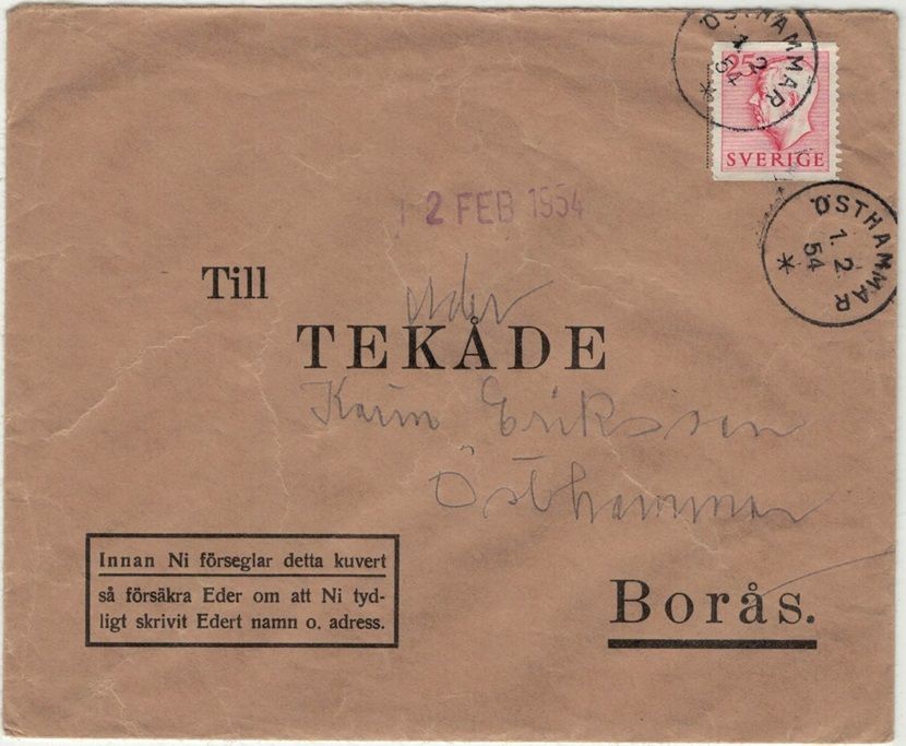 Stämplar: Uppland | Brev o dokument: Försändelser 1938-1970 |