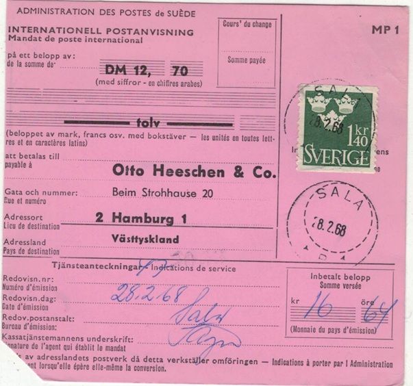 Sala NSt 60 B på postanvisning 28.2.68 |